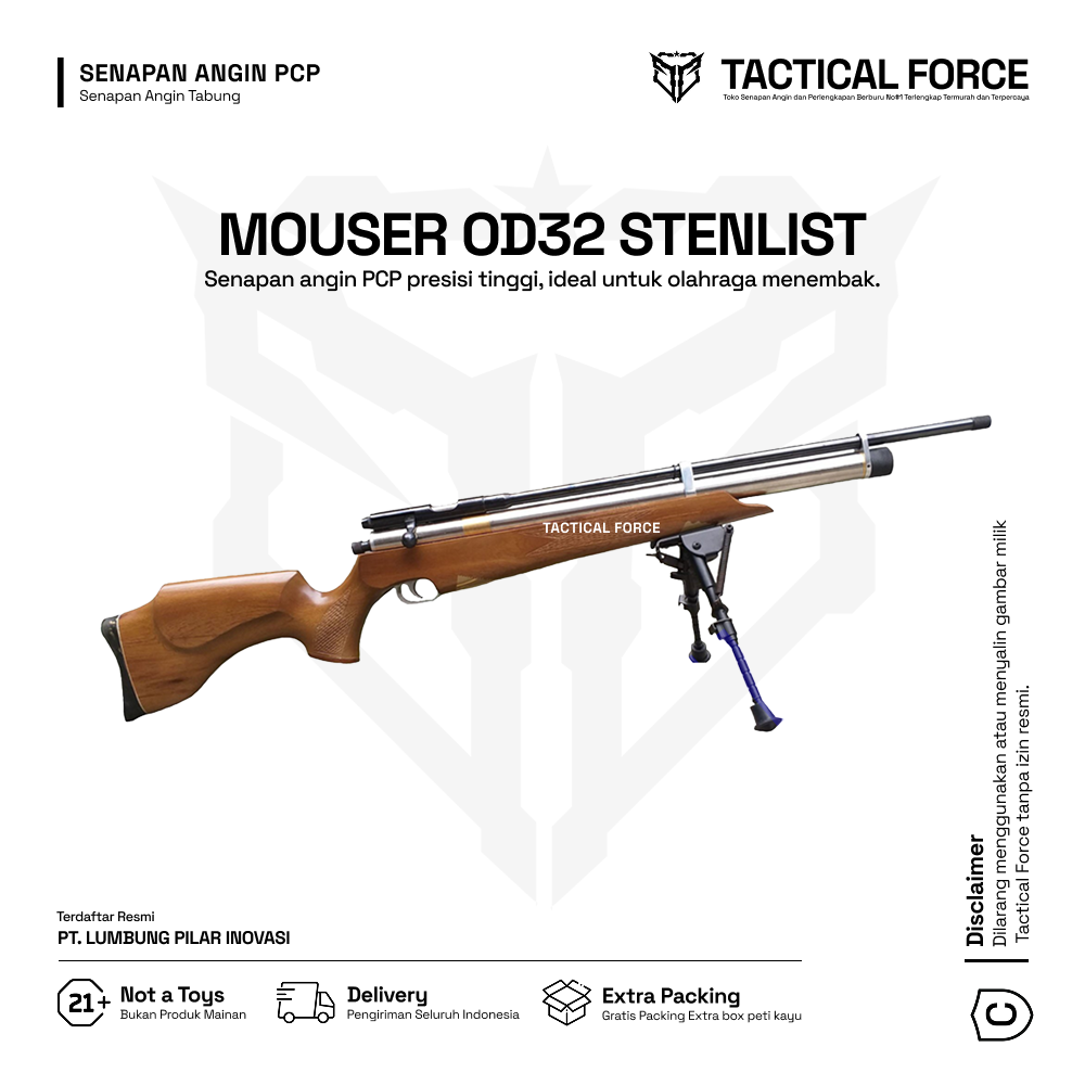 MOUSER OD 32 MAGZIN adalah senapan angin bergaya modern dengan sistem magazin yang praktis, desain OD green yang elegan, serta performa akurasi tinggi untuk olahraga menembak maupun koleksi.